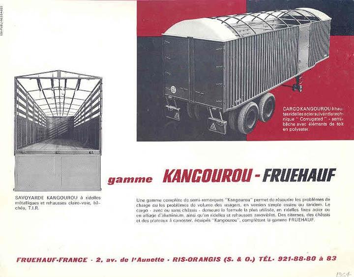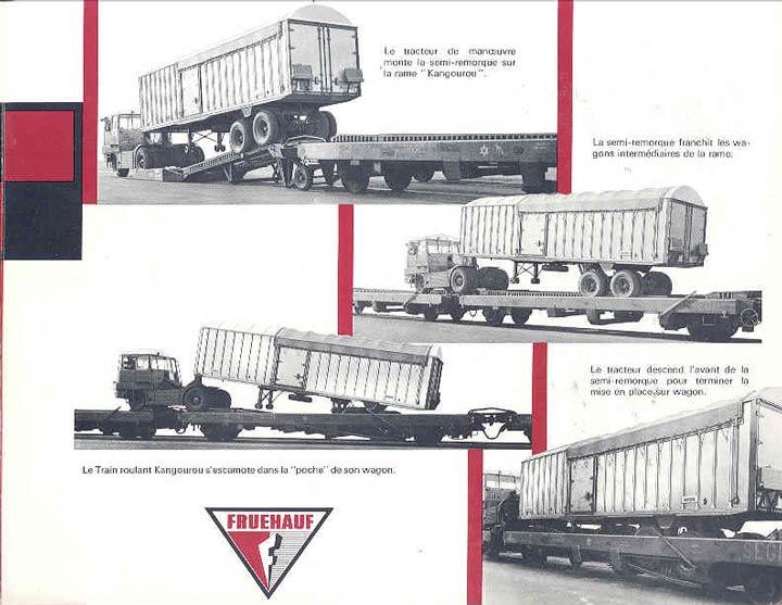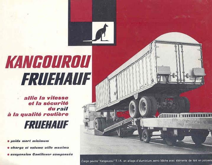 | Initiée au début des années 1960, cette technologie permettait d'embarquer des semi-remorques sur des wagons. Elle fait suite à la technologie UFR. En modèle réduit, les kangourous ont été popularisés par Jouef, puis récemment par REE modèles |